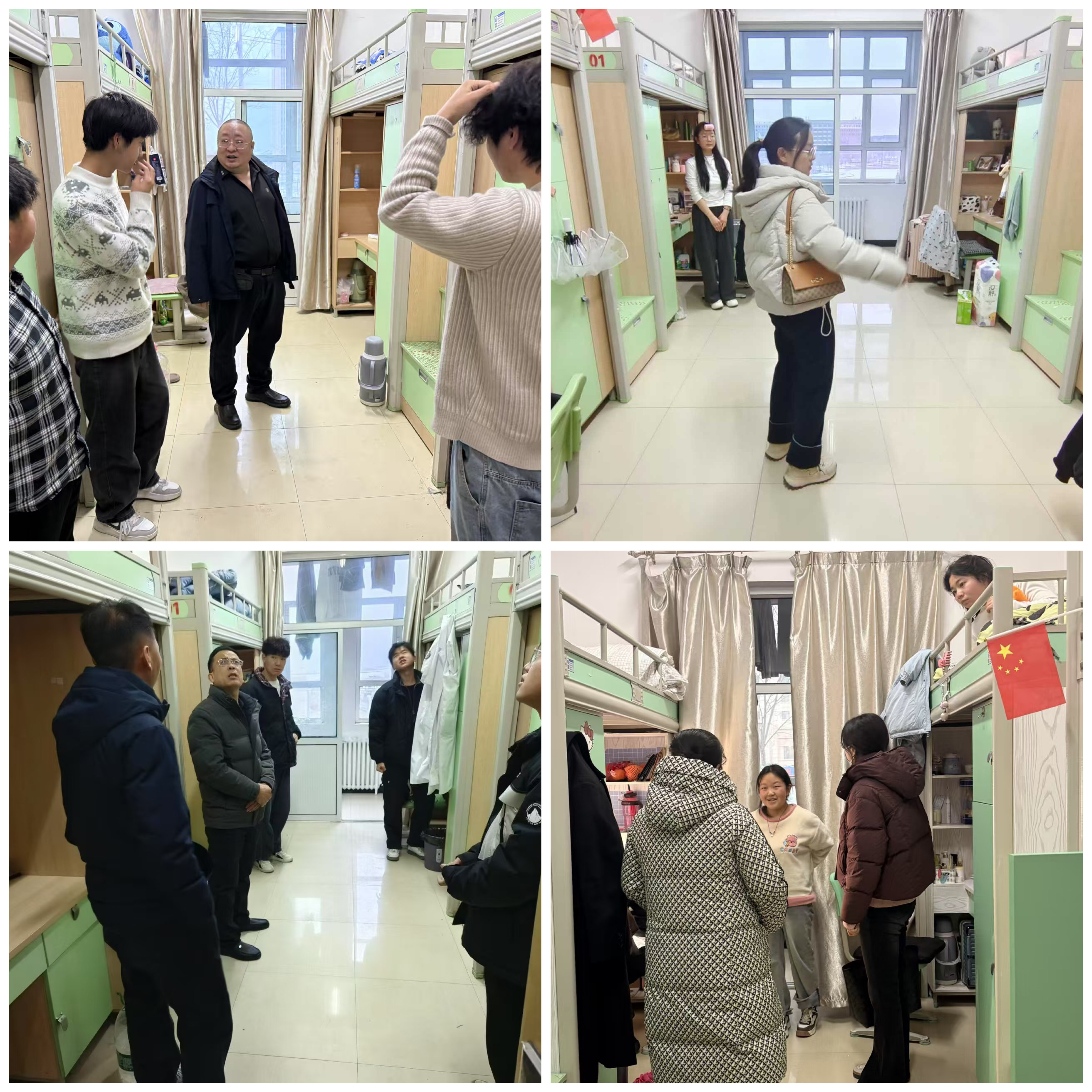 会后,学院领导班子带领辅导员分组深入学生宿舍开展慰问活动。老师们亲切地与学生交谈,询问他们假期的经历、返校出行是否顺利,仔细查看宿舍设施,确保供暖、水电等设备正常运行,特别叮嘱学生注意防滑保暖,出行安全。同时,鼓励学生尽快调整状态,制定合理目标,在夯实专业基础的同时积极参与校内外各项活动,以饱满的热情和昂扬的姿态投入到新学期的学习生活中。