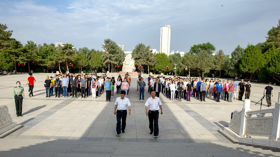 第二天一大早,学院全体党员参观中国工农红军西路军纪念馆,向西路军革命烈士敬献花篮,深深地三鞠躬,缅怀先烈;党员面对鲜红的党旗,重温入党誓词,随后,姜德民书记在中国工农红军西路军纪念碑下讲授党课。