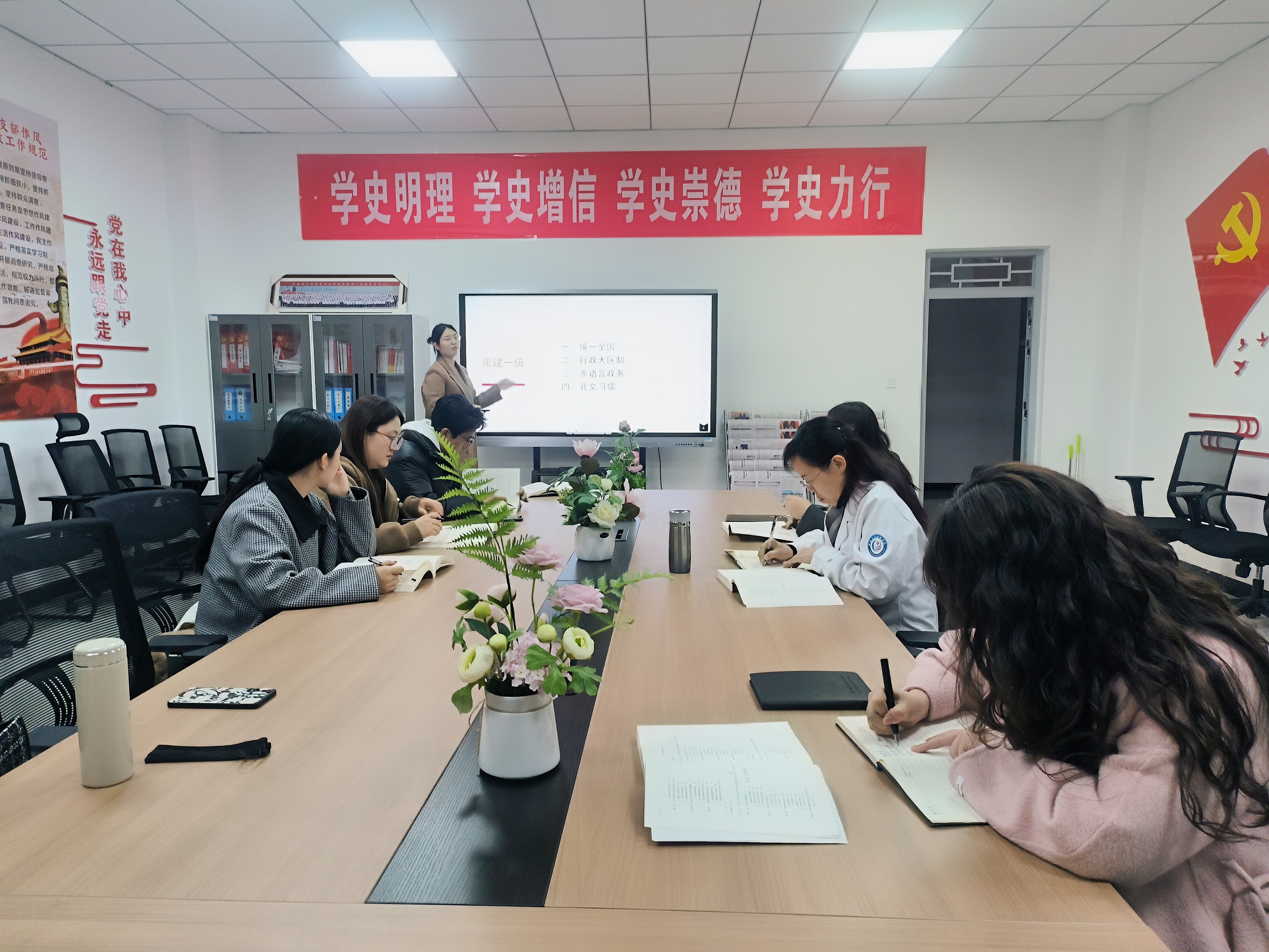 会上,李倩老师围绕“大一统实践深入与中华民族格局底定”专题,从教学目标、教学重难点、教学方法等方面,系统梳理了课程第九讲、第十讲、第十一讲和第十二讲的教学内容和逻辑主线。其他参会教师围绕备课主题进行了热烈讨论,提出了一系列宝贵的意见和建议,实现了教学内容相互补充,教学方法与思路相互启发,达到了共同促进、相互提升的集体备课目标。