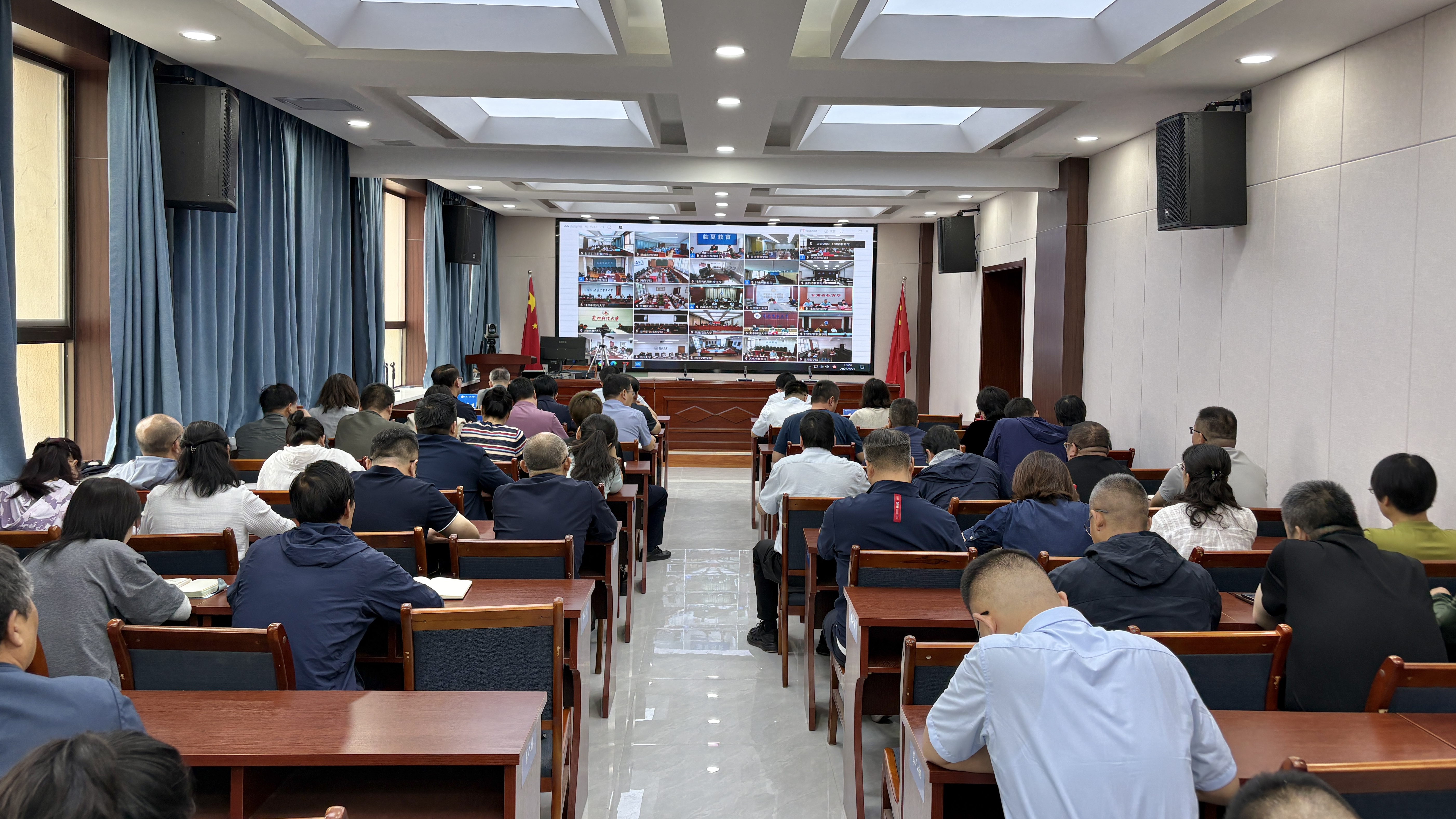 8月22日上午,学校在盐场路校区设分会场参加全省教育系统秋季学期开学防汛工作调度会及校园安全专项整治工作调度会。全体校领导、各处室(部门)负责人、二级学院(教学部)党总支书记、院长(部长)参加。
