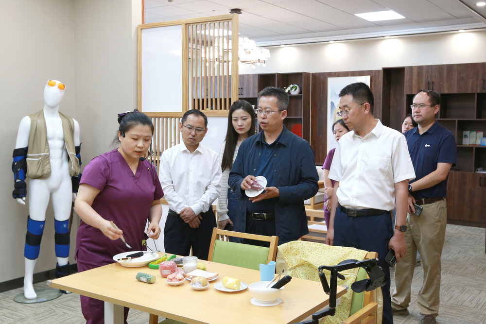朱宗斌一行先后来到学校生命科学馆,临床护理学院母婴护理实训基地、老年人照护生活馆、老年护理实训基地,马克思主义学院红色实践教学基地,信息中心智慧互动教室、课工场、快课工坊等场所,深入了解学校建设及发展情况,并听取了关于学校办学主要特色及成果方面的情况介绍。