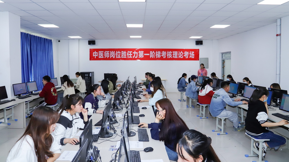 该考核分为理论和实践技能考核两部分。理论考核设在信息中心,共5个考场,主要考察中医理论知识、医学人文素养、卫生法规等内容。实践技能考核设在临床医学系二楼标准化考站,共3个考组,9个考站,主要考察病史采集、中医技能和西医技能操作等内容。考场秩序井然,考生们镇定从容、操作娴熟,考官公平严谨、一丝不苟。