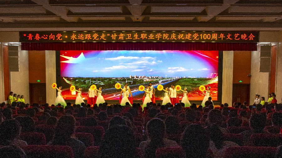 为热烈庆祝中国共产党成立100周年,表达全校师生对伟大的中国共产党的深深祝福,6月24日晚,由校团委、学工部主办,临床护理学院、中医药学院、医学技术学院协办的“青春心向党 永远跟党走”庆祝建党100周年文艺晚会在一号教学楼报告厅举行。校党委书记姜德民,校长任晖,党委副书记刘生肸,副校长康逢民、高博,以及各处室、二级学院负责人、师生代表近500人观看了此次演出。