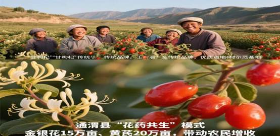 银花15万亩、黄芪等药材20万亩,年产值达20亿元,带动5.2万户农民增收,人均收入超3000元。在祁连山腹地的玉门昌马乡,陈世前教授建立枸杞基地,恢复“甘枸杞”传统品牌,其产品“色如樱桃、味如草莓、香气清远”,被中国中药协会评为“优质道地药材示范基地”。