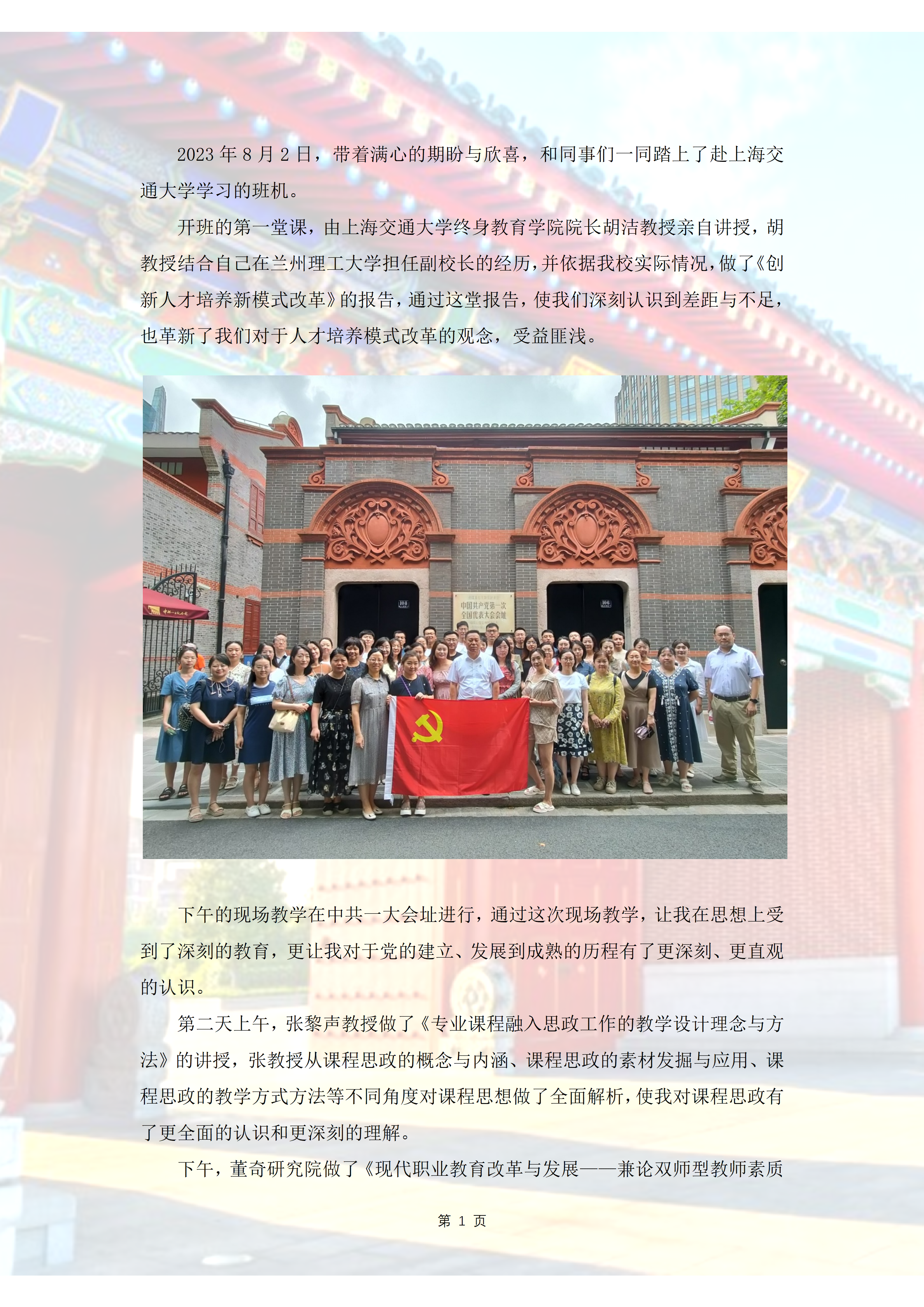 【上海交通大学培训心得】刘玮:饮水思源,爱国荣校