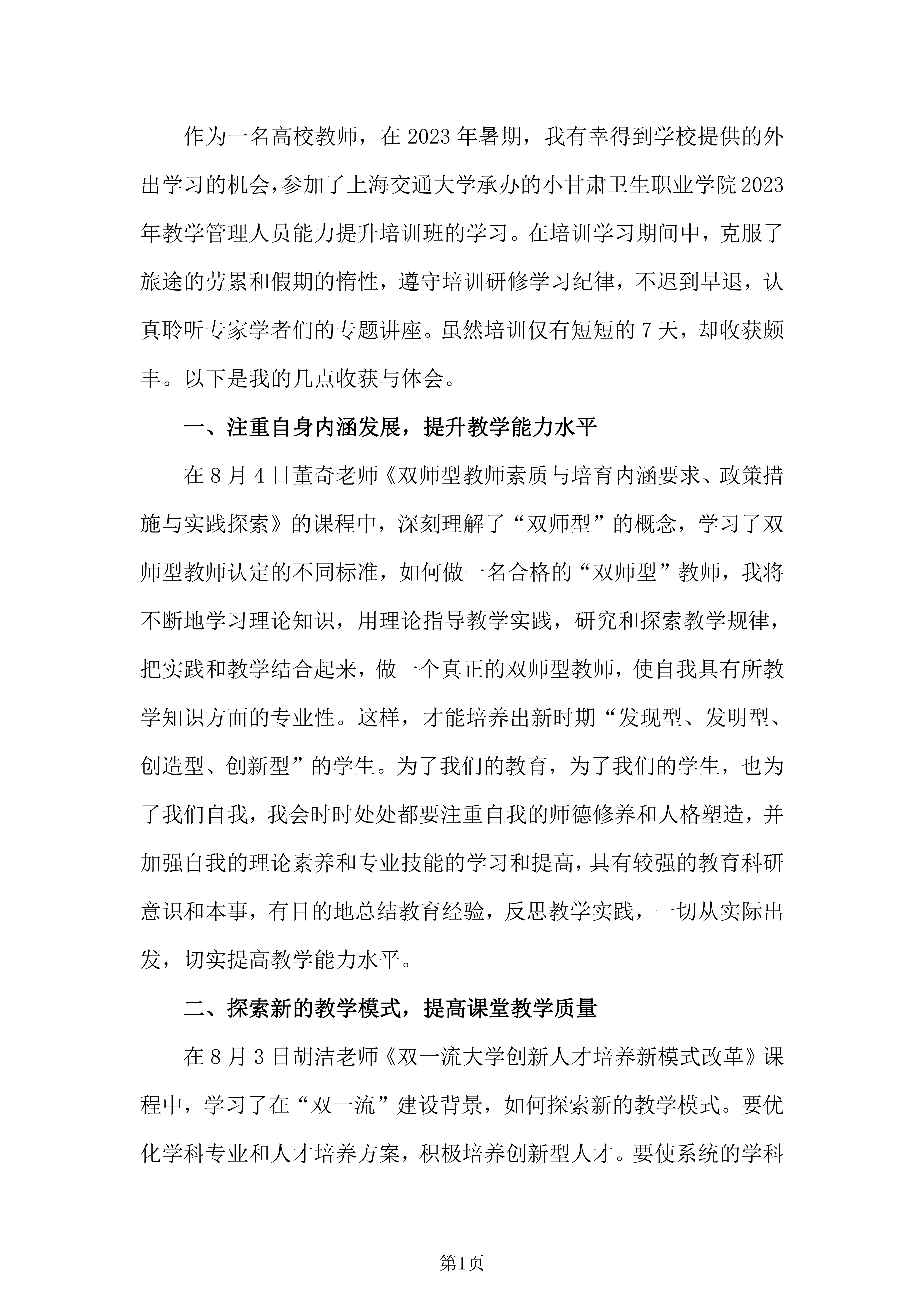 【上海交通大学培训心得】侯卫兵:做一名合格的“双师型”教师