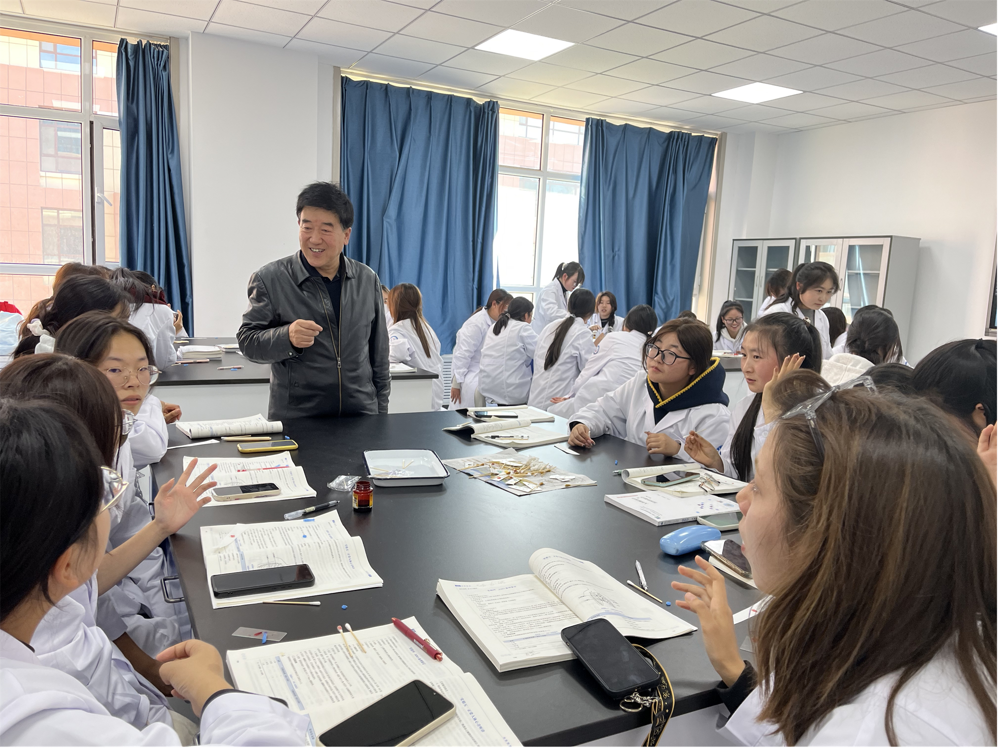 自9月份开始,姜教授定期莅临学校,深入近30个班级,开展全面的教学督导和随堂听课活动。他不仅关注理论课程的教学效果,还亲自参与实验和实训课堂,对实践教学环节给予了细致的指导。在听课过程中,姜教授认真记录,仔细观察,对教师授课及学生学习给予好评,并提出宝贵建议,包括创设高质量教学情境、关注学生职业素养等。他还着重关注了卫生类职业院校学制规划、教学标准制定、课时分配及临床教学等顶层设计问题。