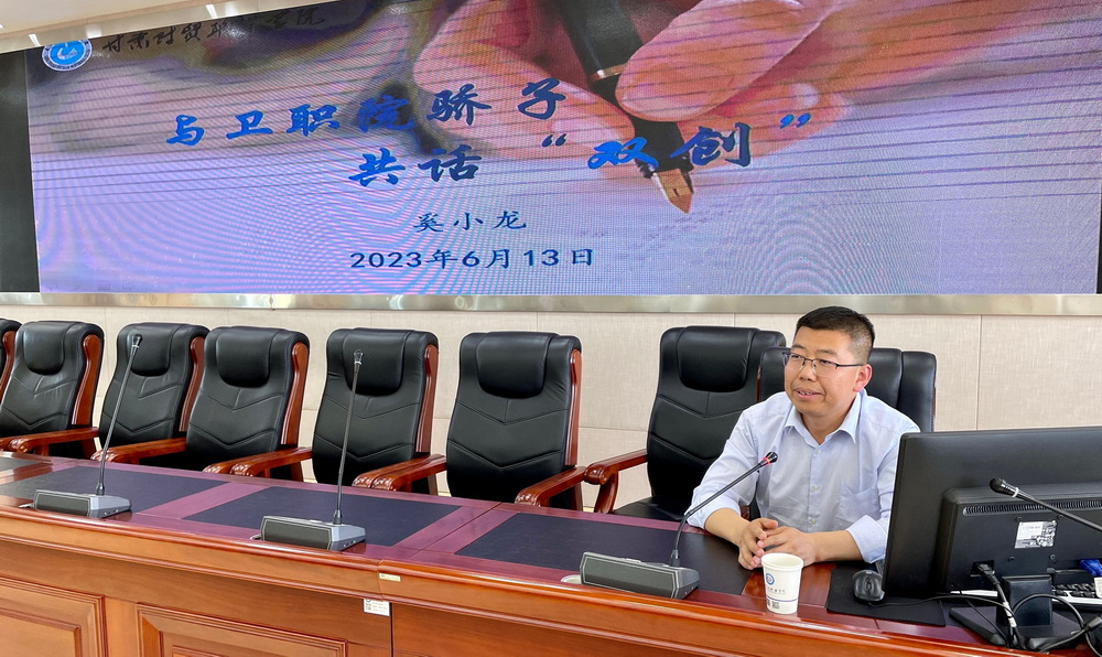 奚小龙教授以《与卫职院骄子话“双创”》为题进行授课,从两校的异同点出发,结合职业教育特点及学生的实际情况,通过创新创业大赛解读、基于评委视角准备大赛、基于参赛视角准备大赛、项目筹备与实务等四大模块,分享了自身开展“双创”教育的经历及指导创新创业大赛的经验,并强调了参赛团队在备赛过程中的重点与难点,令在场师生收获颇多,受益匪浅。