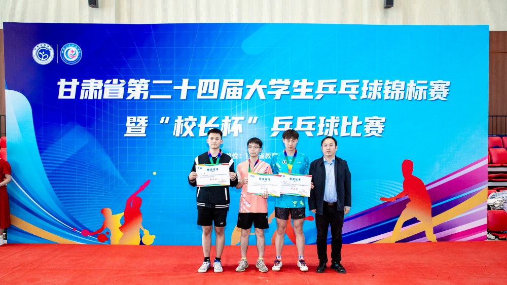 兰州理工大学汪恒、兰州财经大学闵捷、西北师范大学李岸柏获学生甲组男子单打前三名。