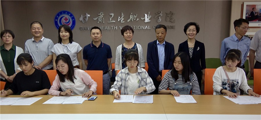 最后,赴日介护技能实习就业的8名学生与日本用人单位签订了正式合约。
