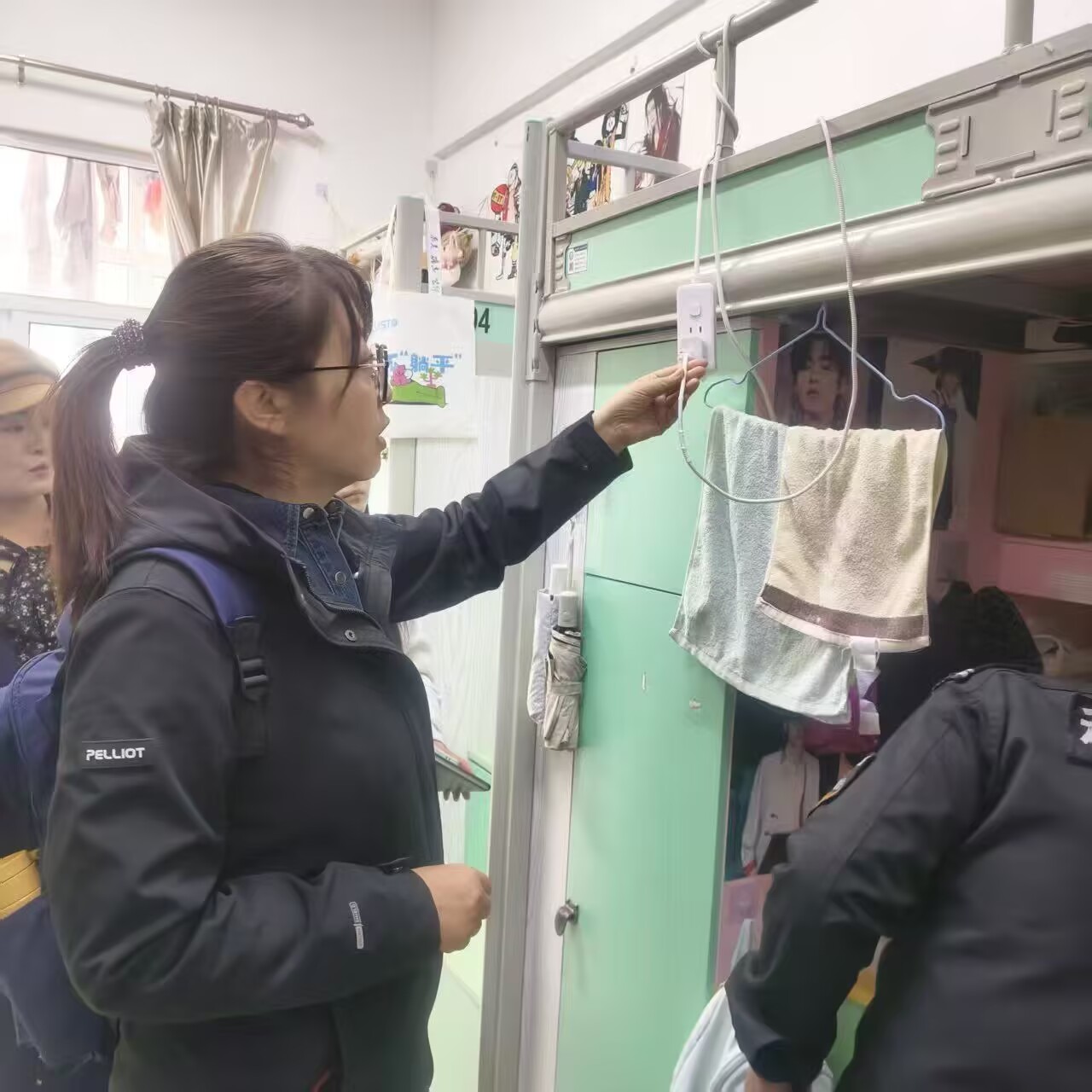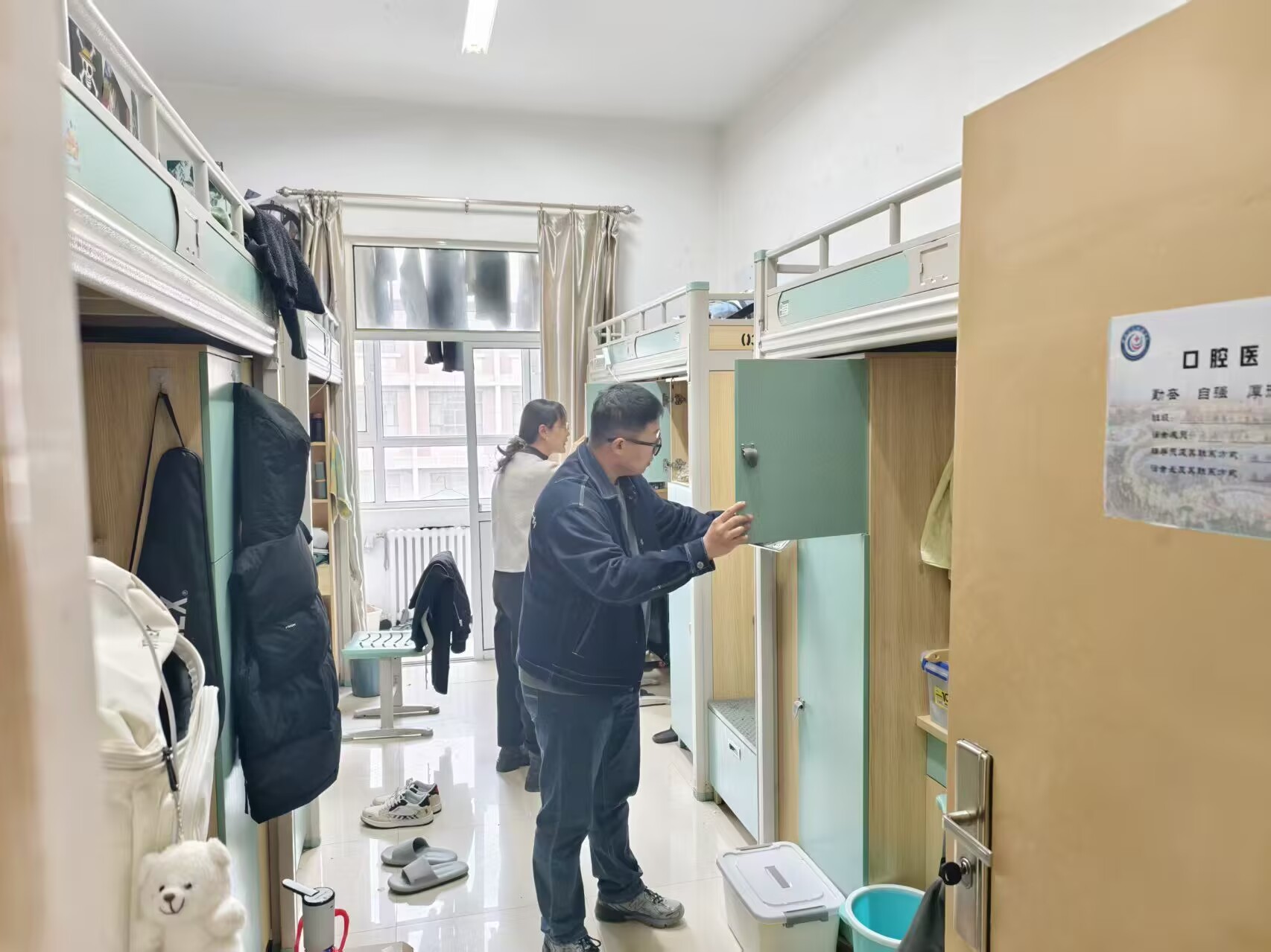 宿舍安全检查阶段,院领导带领全体在校班辅导员对全院宿舍展开全覆盖检查,重点排查大功率电器、管制刀具等违规用品。检查发现,个别宿舍存在电吹风、卷发棒、酒精灯等不安全物品,还有宿舍卫生状况欠佳。针对这些问题,检查组立即现场整改,并将情况反馈给辅导员,要求后续跟进监督,确保宿舍安全与整洁。