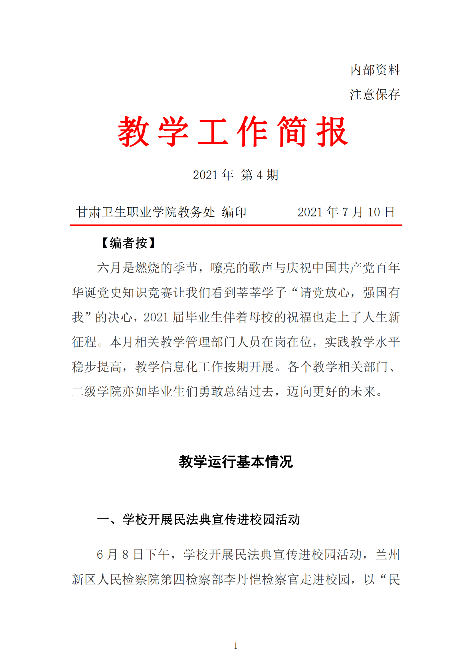 2021年6月份教学工作简报