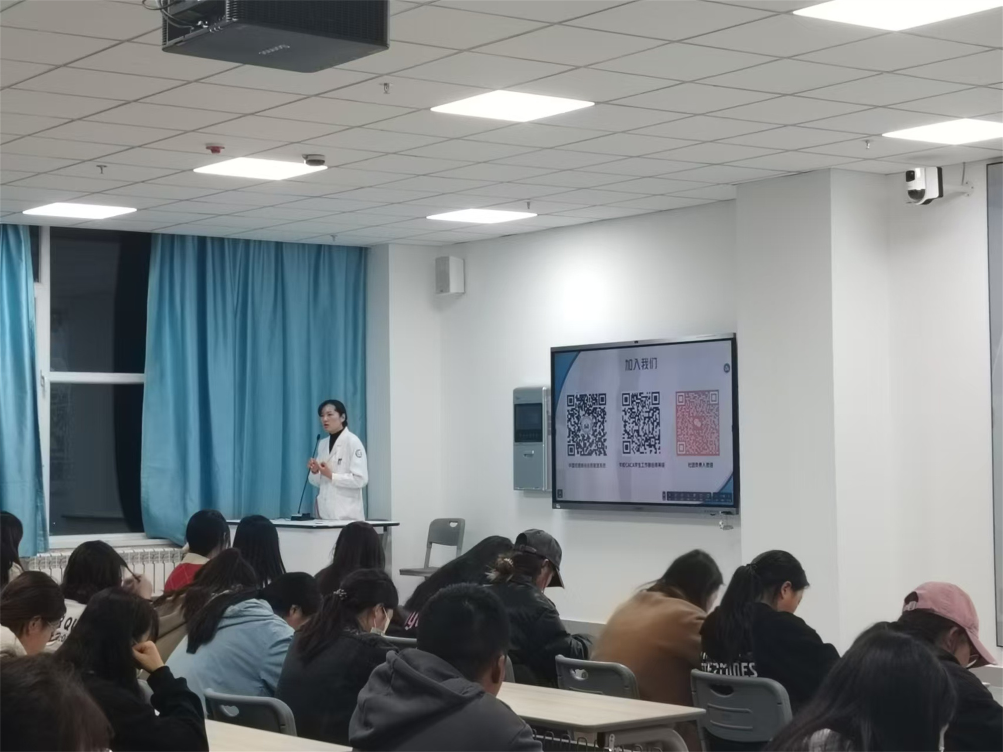 10月30日—11月4日,CACA学生工作部在5号教学楼阶梯教室开展“光影中的医学与人文关怀”电影赏析暨主题讲座活动。400余名工作部会员共同观看电影《我不是药神》,校团委书记刘娉、工作部指导教师李建民、梁国晶分别为学生做了“慢性粒细胞白血病”相关科普讲座。