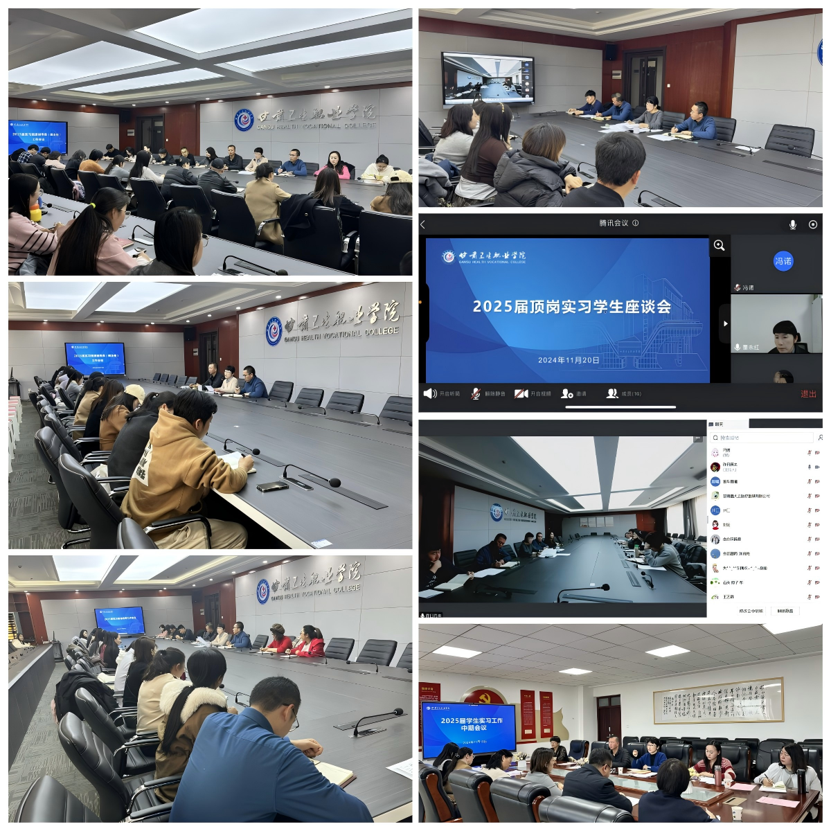 主管工作校领导先后组织召开2025届实习中期工作推进会议、全体实习班辅导员(班主任)工作会议、实习指导教师工作会议、部分实习班辅导员(班主任)约谈会、部分顶岗实习单位学生恳谈会、顶岗实习企业座谈会等会议;主管部门发出《致2025届实习生的关爱告知书》《关于进一步做好实习管理工作的通知》等,进一步完善学校实习工作治理体系、提升整体治理能力。