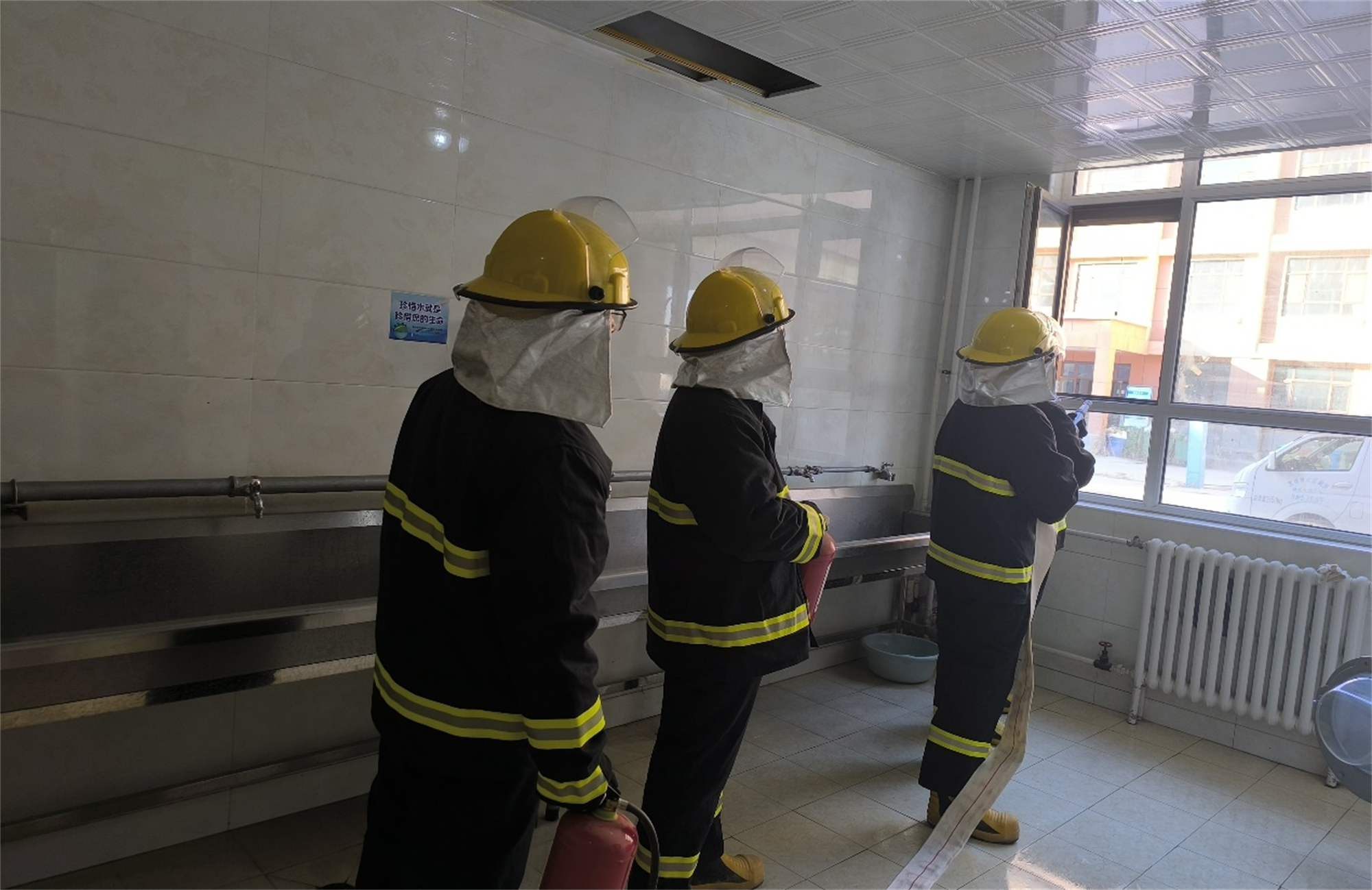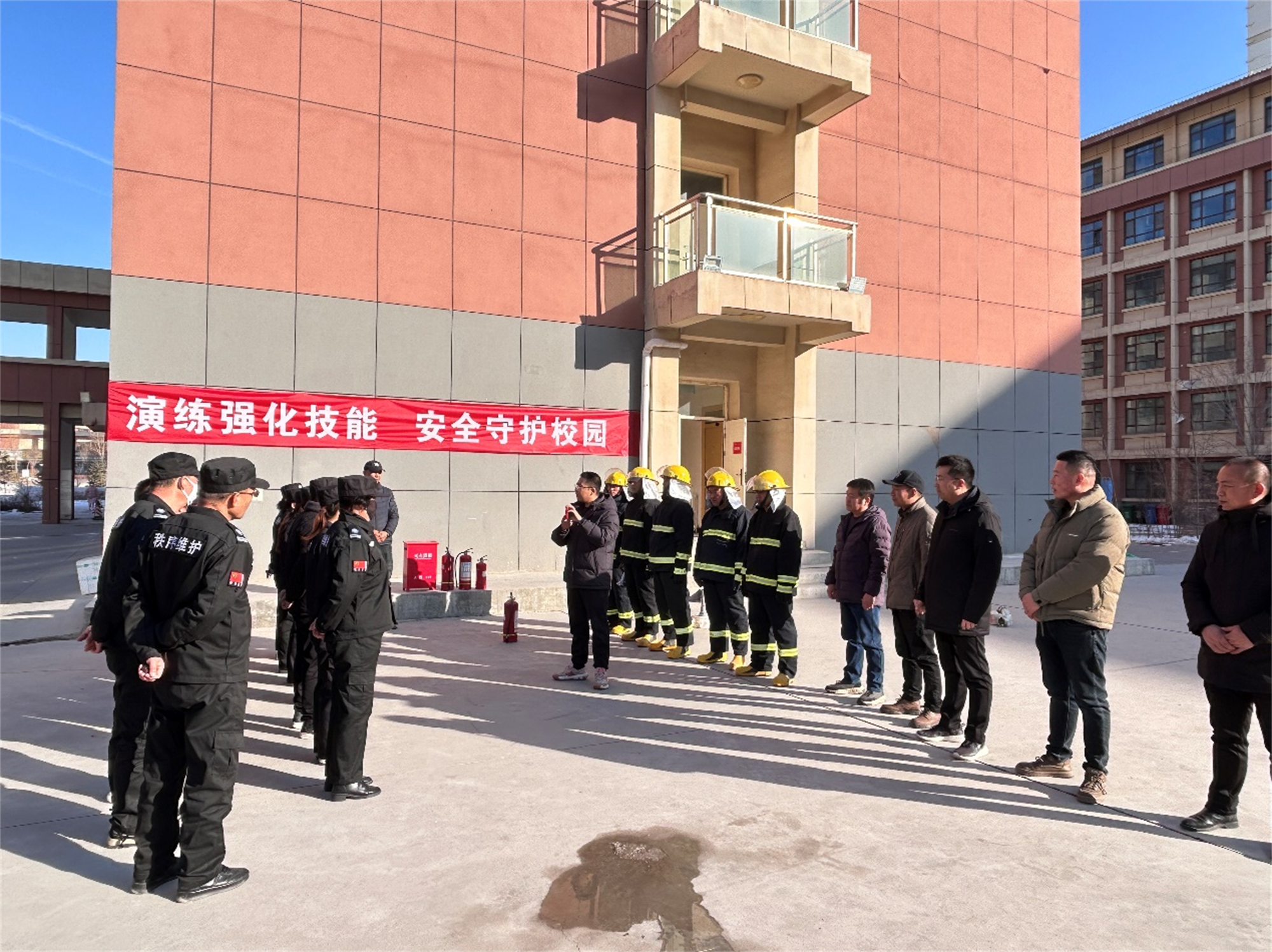 12月17日下午,安全稳定与保卫处携手服务保障处在学生宿舍区组织公寓管理员开展应急疏散演练。