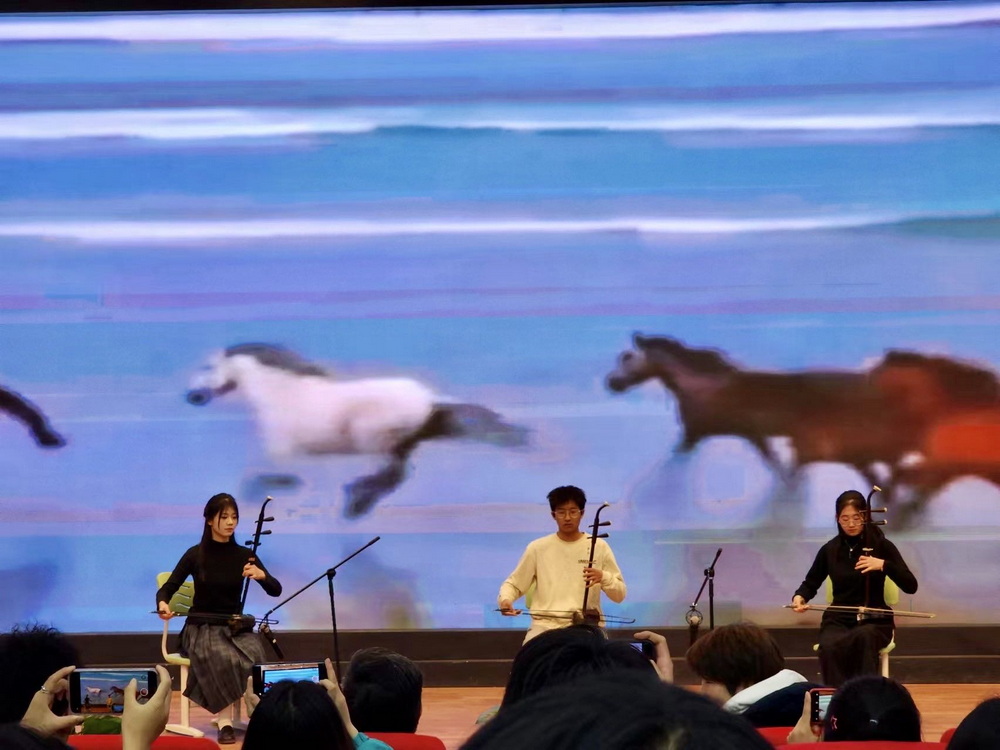 本次活动分为三个环节,第一个环节中,各社团进行年度总结报告及展演。全校27个社团负责人按照排序分别进行工作及财务支出情况总结对下一年度的工作计划进行了介绍部分社团还进行了社团文艺展演活动。其中,器乐社带来的二胡演奏《赛马》,旋律粗犷奔放由远到近清脆而富有弹性的跳弓,强弱分明的颤音,描绘了赛马盛况的情形舞蹈队带来的舞蹈《EiEi + go hard点燃全场,将大学生的青春、活力完美呈现器乐社带来的古筝演奏《战台风乐曲以其磅礴的气势、热烈的气息、奔放的旋律而感染了在场每一位观众;音乐社带来的合唱《如愿》为披上银装的校园增添了几分热烈的暖意器乐社带来的葫芦丝演奏《月光下的凤尾竹》以其悠扬的曲调、娓娓动听的旋律给人心旷神怡的感觉。该环节在器乐社带来的吉他演奏的歌曲《天后》中结束。第二个环节中,校团委书记冰宣读了《关于表彰2023学年优秀社团干部、优秀社团成员的决定》,并为获得表彰的同学颁发了荣誉证书。活动最后,校团委衡书记发表了讲话,对在过去一年里为校学生社团工作做出巨大贡献的各位老师、同学们表示感谢,并肯定了各社团在本年度活动中取得的成绩表示肯定。她对全体提出了两点希望,一是希望各社团吸取经验教训,继承优秀理念,保证社团的传承性、凝聚力和长久发展。二是希望各社团严格遵守规章制度,强化自主管理,确保社团活动开展的规范性。最后,她祝愿各社团蓬勃发展,校园文化生活更加丰富多彩。