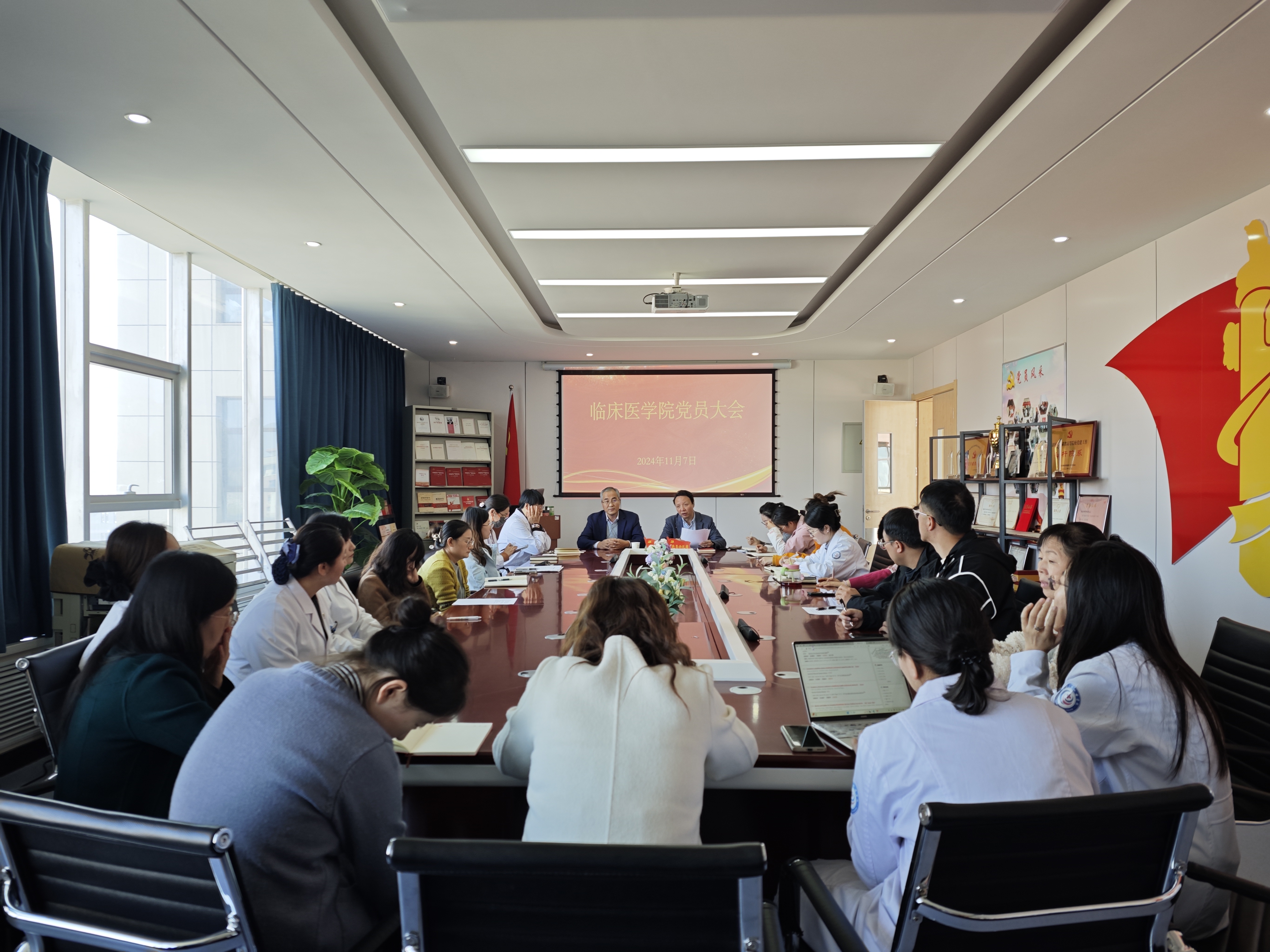 2024 年 11 月 7 日,临床医学院在学院党员活动室隆重召开教师及学生党支部成立大会。此次会议是校党委进一步加强基层党组织建设工作安排的重要举措。会议由学院党总支书记谢振荣主持,院长寇桂香、副书记张妤、副院长徐银娟以及全体师生党员共同参会。