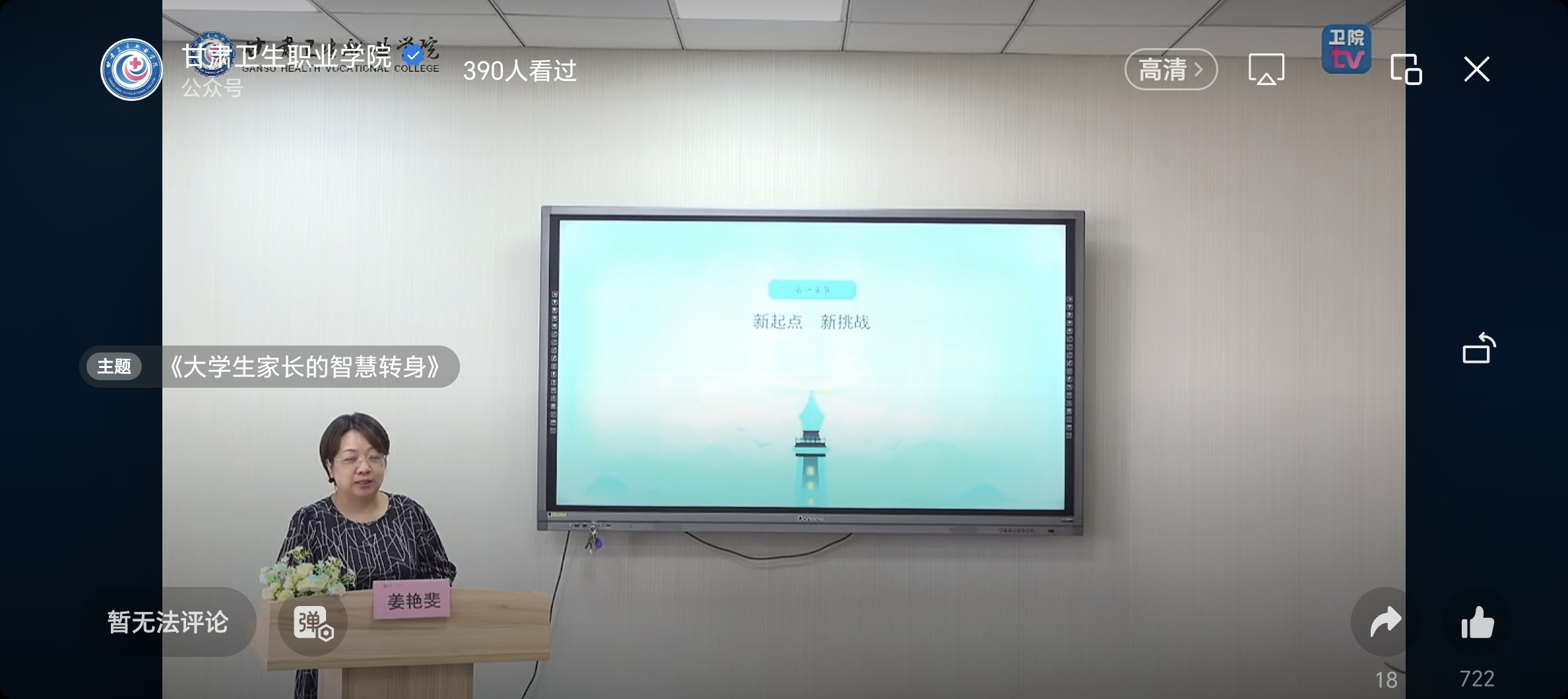 为深化家校协同育人机制,提升家长心理健康教育能力,6月11日上午,心理健康教育中心举办2025年“5·25”大学生心理健康教育月系列活动之亲子关系家长讲座。活动特邀西北师范大学姜艳斐副教授担任主讲,通过学校官方微信视频号直播,吸引2000余名家长云端参与。