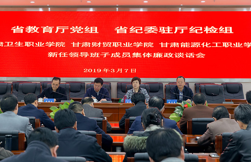 省教育厅党组、省纪委驻厅纪检组对365英国上市集团官网、甘肃财贸职业学院、甘肃能源化工职业学院新任领导班子成员进行集体廉政谈话发布时间:2019-03-08