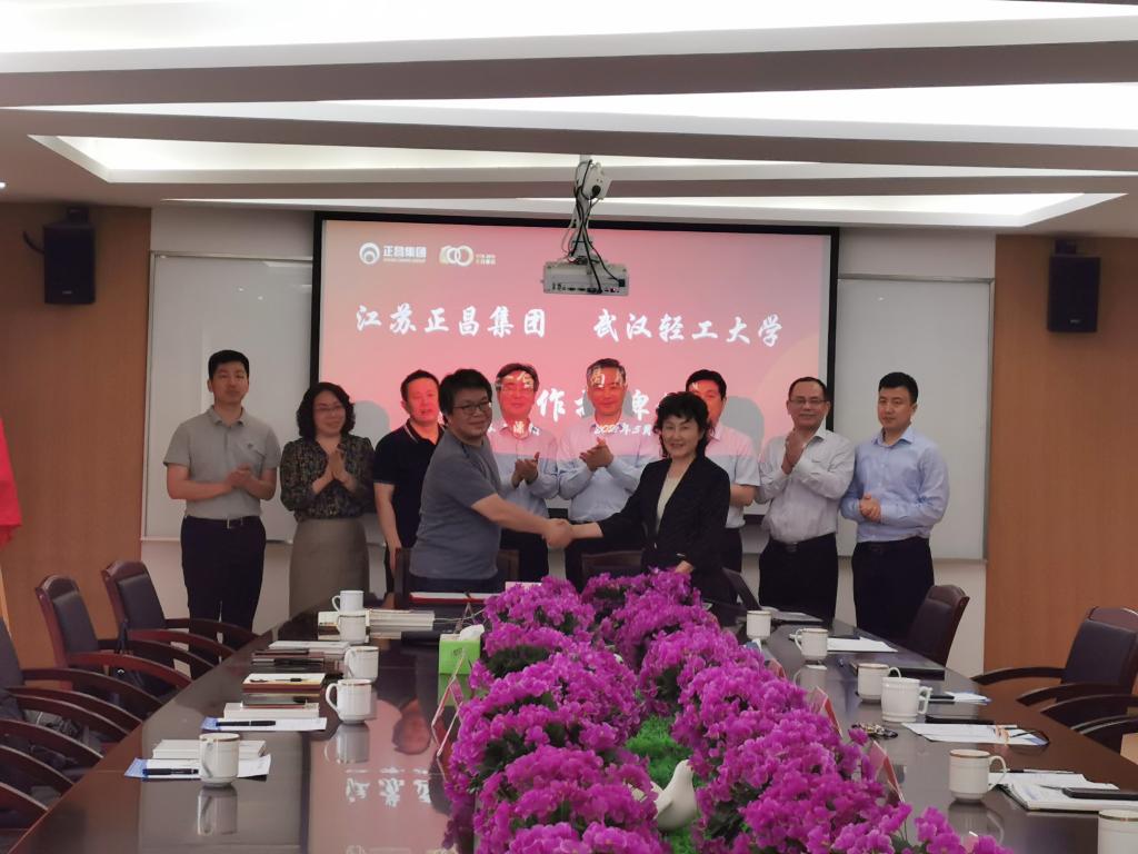 继4月14日武汉轻工大学与江苏正昌集团签订校企合作共建实训基地后,5月13日武汉轻工大学与江苏正昌集团研究生工作站及校企合作实训实习基地揭牌仪式在正昌集团成功举行。江苏正昌集团董事长郝波、副董事长陆瑛、常务副总裁吕顺凯、党委书记宋志明、助理总裁研究院院长李庆凯,我校食品学院院长丁文平、机械学院党委书记刘凡、科技处副处长胡志刚等共同出席了此次活动。