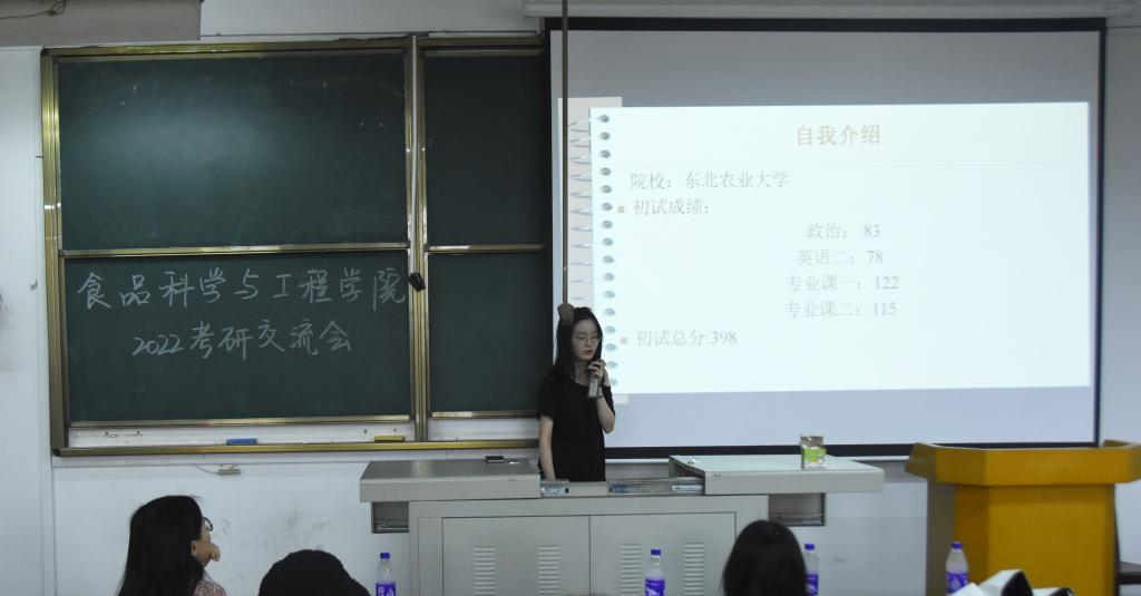 交流会上,三位17级学生代表分享了各自的考研院校选择、复习时间安排、复习方法、备考心态、笔试技巧及复试经验等多方面的经验与心得。许金淇着重分享了数学与专业课的复习方法;王一畅将自己的择校准备、参考资料选择、考研院校数据收集工作做了详细介绍;尤心萌还就复试经历和技巧展开了深入讲解。之后,18级学硕研究生田一媚分享了自己从哈尔滨南下到武汉轻工大学食品学院读研并成功考取浙江大学博士生的经历,介绍了食品学院的科研及师资情况,与同学们一起探讨了为什么要读研、读研三年应该如何努力、在我校食品学院读研有哪些收获与感悟等问题。
