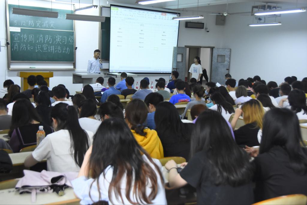 为进一步落实各级有关学校安全教育工作精神,增强全体师生安全意识,5月12日下午,由校保卫处主办,食品学院承办的“5.12防灾减灾宣传周消防演习暨消防知识宣讲活动”在科教楼顺利举行。校领导陈伟、保卫处处长陈汉想、保卫处副处长张涛、保卫处副处长李飞、保卫处消防科科长覃启勇、食品学院分团委书记熊心宇、常青消防救援站站长赵浩、常青花园派出所高峰等参加活动,各学院部分教师与学生代表在现场进行观摩。