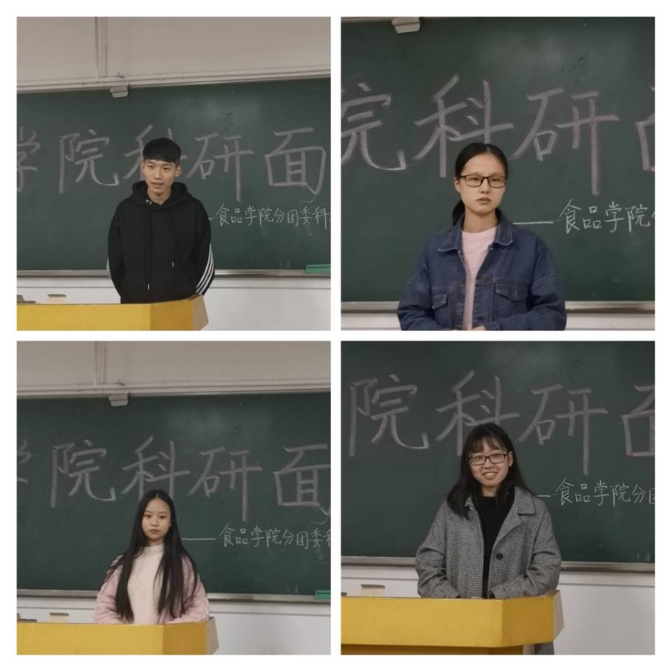 本报讯(食品学院 王昊)为吸纳优秀科研人员,培养同学们的科研能力。我校食品学院分团委科技创新与创业协会于2018年11月14日下午4:00,在常青校区科教305举行了科研团队面试。此次面试有幸邀请到贺军波和陈曦老师担任评委,参会的还有科协主席团部分成员。