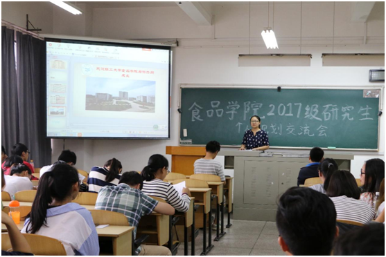 本报讯(食品学院 曹健)为使研究生新生能够更好更快地适应研究生生活,帮助他们减轻初入校门的困惑和迷茫,使他们能在学习、生活和工作等方面做好生涯规划,少走弯路,9月21日下午4点,由我校食品学院举办的2017级研究生个人规划交流会在科教楼207教室顺利举办。食品学院研究生辅导员许敏武老师与全体2017级研究生参加了本次交流会。