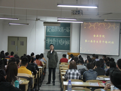 10日下午14:00,食品学院分团委书记许敏武以《当代大学生干部组织认同探究——以武汉轻工大学食品学院学生干部培训问卷调查为例》的调研报告为例主要讲解了学生组织的功能及实现,主要包括学生组织的基本概念、学生组织价值取向、团委老师与学生干部的关系、学生组织在实现其功能中主要要考虑的因素四个方面的内容,许老师着重介绍了学生会、共青团、学生社团几个学生组织的不同与区别。