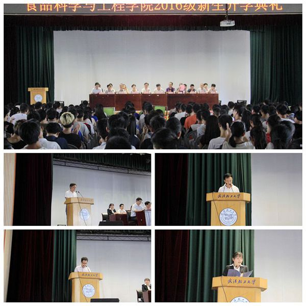 本报讯(食品学院 许敏武 摄影:陈适雨)金秋送爽、丹桂飘香。食品学院2016级本科新生开学典礼于8月31日上午在常青校区大学生活动中心隆重举行。食品学院分党委书记王宏光老师、院长丁文平教授、副院长王学东教授、副院长肖安红教授、分党委副书记易文君、各系系主任以及院学工老师和385名新生出席了本次大会。