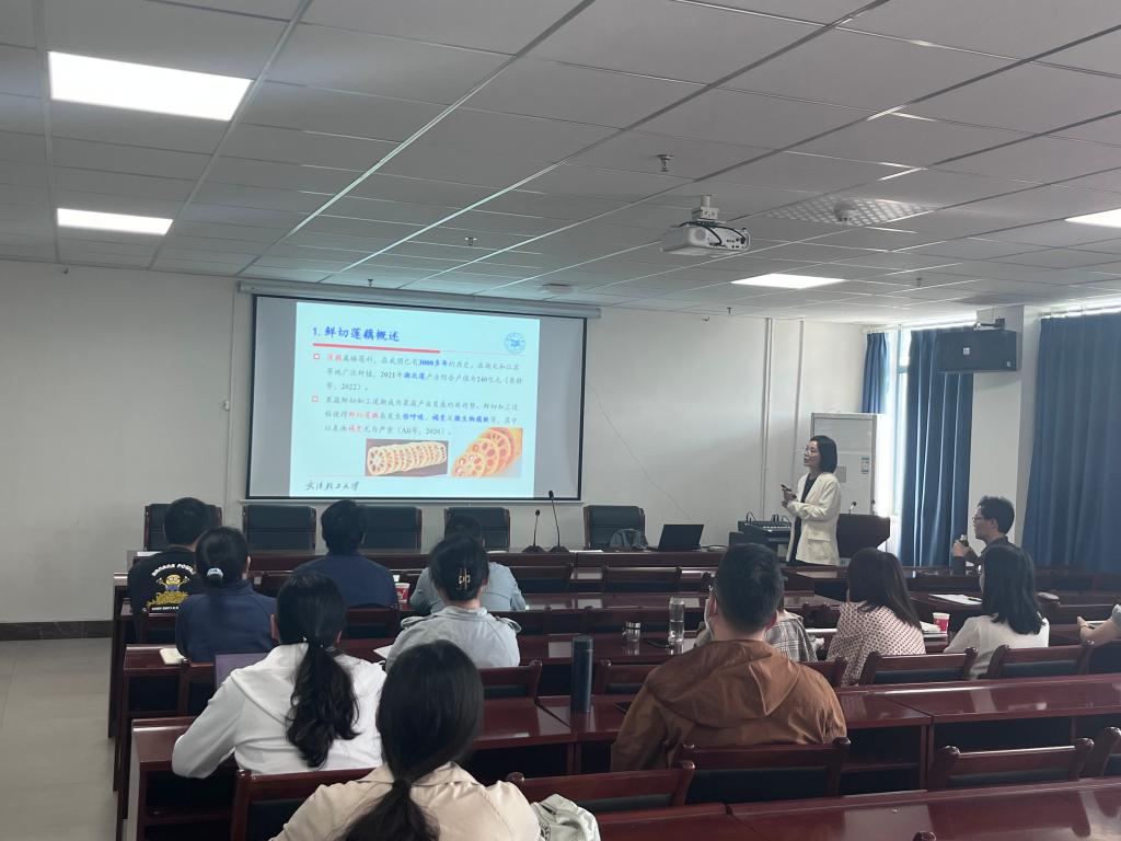 闵婷副教授作了“鲜切莲藕贮藏保鲜与品质调控”的学术报告,主要围绕鲜切莲藕保鲜难度大、褐变分子机制不明确等问题,从切割方式、保鲜处理方法和贮藏条件三个方面提出了品质控制方案,同时解析了鲜切莲藕品质劣变与调控的分子机制。