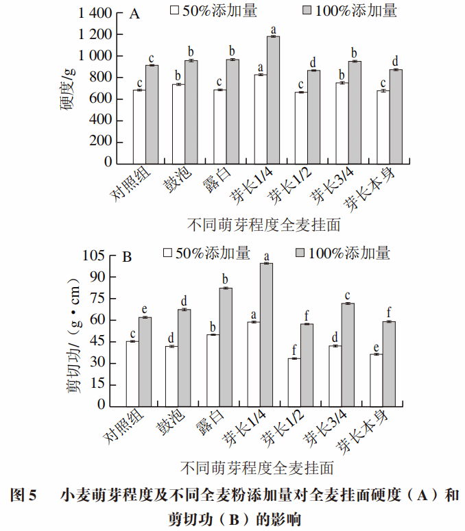 3 小麦萌芽程度对全麦挂面质构特性的影响