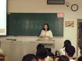 大会伊始,金老师指出食工与其他专业的联系与区别, 以及考研究生和考公务员的意义所在,介绍了其对应的工作要求、就业前景,走在同一条大路上,如何在专业和非专业两个岔路口前做出选择。一再强调人要清楚自己的短板和特长、扬长避短,做任何事不能犹豫、不能拖延,对"优秀"的定义提出了自己的见解,即社会上没有绝对的优秀,对一个人来说只有合适与适合可言。她并没有引用过多抽象的概念,而是从现实的角度,结合亲身经历和周围朋友的故事向同学们介绍了该专业与非专业该走的几条路,以及食工专业各类企业单位的薪酬待遇、发展情况、竞争优势,解决了同学们心中存在的诸多疑问,动员同学们坚定专业自信心,学会确定并分步实现长期目标,尤其提醒同学们着重培养个人素质,扩大自己的朋友圈。最后她向我们口述了个人简历,从中足以看出她的为人谦逊而亲切,亦师亦友,令人印象深刻。