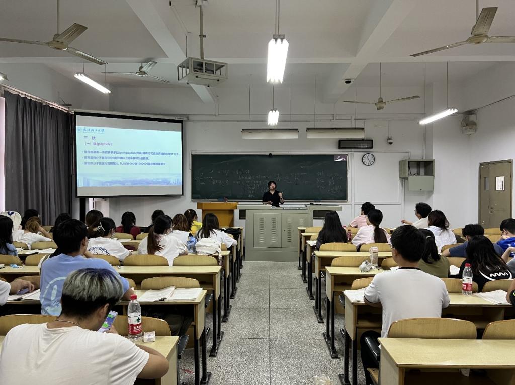 该次课程由彭利娟老师主讲,主要讲述了氨基酸的主要理化性质、蛋白质的分子结构,要求学生熟悉氨基酸的等电点性质在生产中的应用、掌握蛋白质分子结构的概念,各级空间结构的构象特点等知识点。胥伟副院长、系主任宫智勇老师、周敏老师、侯温甫老师、闵婷老师和刘言老师等,参加了此次交流活动。课后,大家针对课堂教学的各个环节进行了深入讨论。