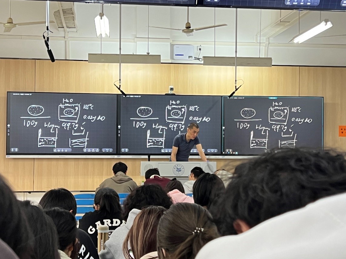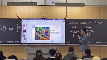英国提赛德大学Dr. Jibin He以及Dr. Yafei Liu两位外教先后担任中英食品2023级《Biochemistry and Chemical Science》主讲老师,课上向同学们讲授了生物化学的相关知识,例如细胞及DNA的结构等。