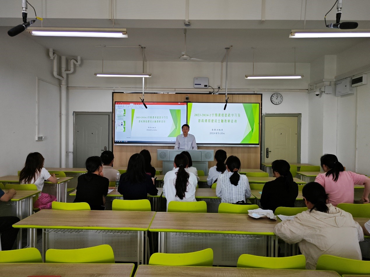 为贯彻落实教育部《高等学校课程思政建设指导纲要》(教高〔2020〕3号)的精神,将思想政治教育贯穿人才培养体系、全面推进课程思政建设,食品工程系结合实际情况,于5月8日在科教楼704召开了“2023-2024-2学期课程思政学习及课程建设主体教研活动”。