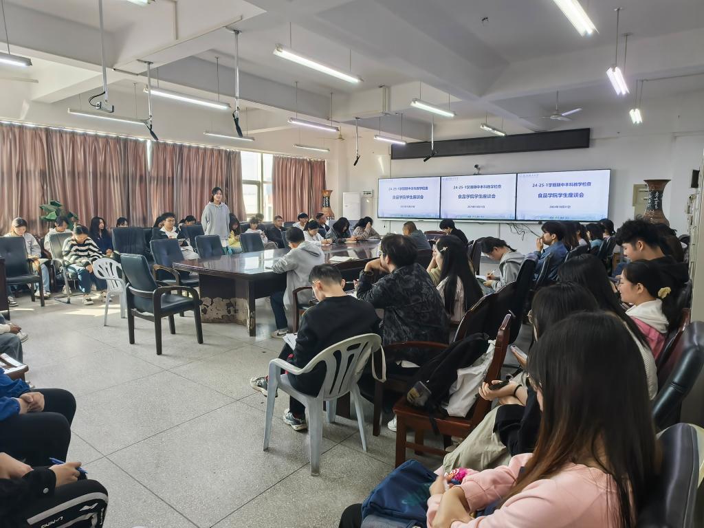 10月31日中午13:30,食品学院举行了2024-2025-1学期期中学生座谈会,学校督导员张开诚教授、各年级学生代表、教学秘书及院领导参加了座谈,食品学院院长助理郭城主持会议。