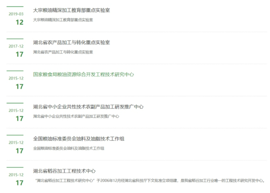 专业拥有大宗粮油精深加工教育部重点实验室、国家粮食局粮油资源综合开发工程技术研究中心、农产品加工与转化湖北省重点实验室、湖北省油脂工程中心等 19 个国家级、省部级科研平台。