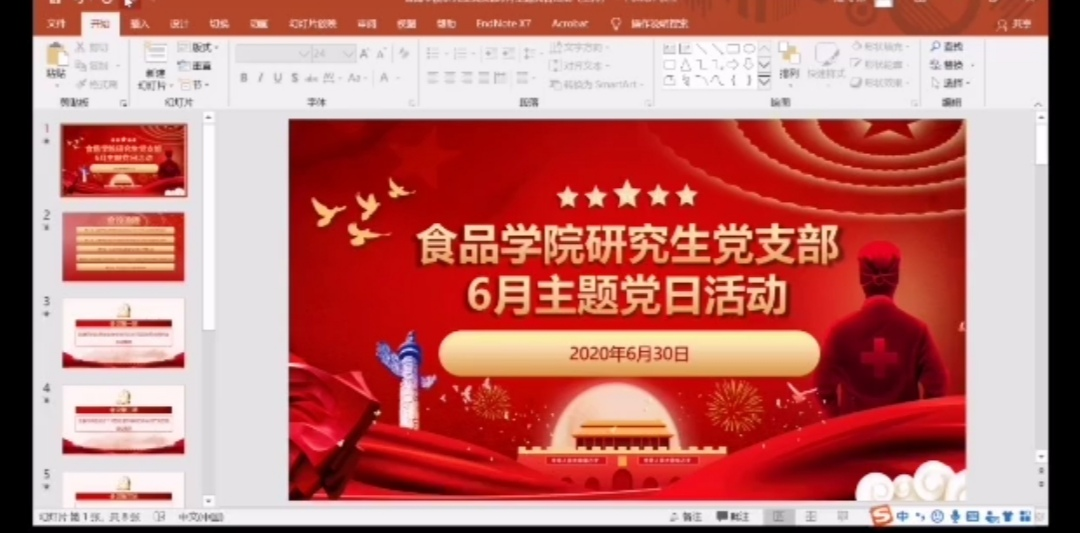 在中国共产党建党99周年之际,为贯彻落实学校在各基层组织开展党建“四个一”活动的通知精神,进一步加强党员同志的责任意识和担当意识。6月30日晚上七点,食品学院研究生党支部通过腾讯会议开展了支部主题党日活动,支部全体党员就2020年全国两会相关精神及中国共产党建党以来光辉历程展开了学习。7月1日上午九点,支部全体党员还收看了高校党组织战“疫”示范微党课“七一”专题。