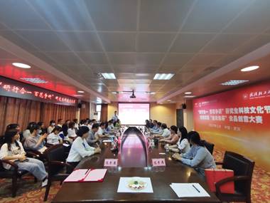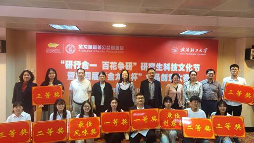 2021年5月7日下午两点半,在常青校区食品科技楼二楼多功能厅举办了武汉轻工大学首届“研学合一 百花争研”研究生科技文化节暨“金龙鱼杯”研究生食品创意大赛。丰益研发中心注册营养师张情,副校长侯永清教授,研究生工作部郑翘楚部长、佘珠花副部长,食品学院院长丁文平教授、常务副院长王学东教授出席了本次大赛。嘉宾张情与食品学院伍金娥教授、刘刚教授、王琦副教授及王国珍博士一同作为评委,对各组作品进行选拔。