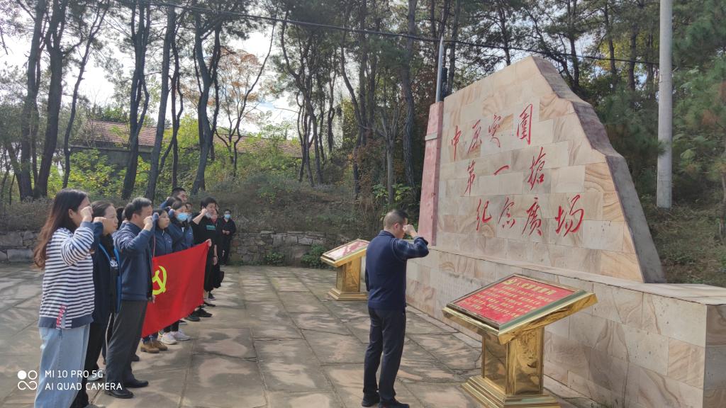 随后,党员们参观孙家畈革命旧址, 1949年5月中共湖北省委、省政府、湖北军区在此筹建,沿着革命先辈的足迹,党员们参观了中原突围磨山纪念馆,学习了解了中原突围精神,在中原突围第一枪纪念广场,所有党员重温入党誓词,在党旗的见证下,表明了自己永远跟着共产党走、为共产主义事业奋斗终身的决心和信念。