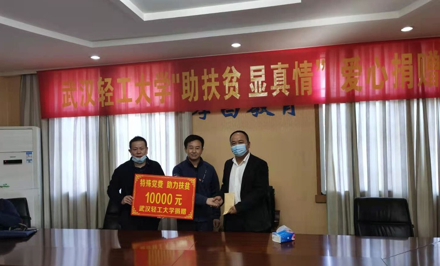 为助力脱贫攻坚,支持当地教育事业的发展,在孝昌县教育局“助扶贫显真情”爱心捐赠仪式现场,食品学院党委和机械学院党委将一万元特殊党费交给花西乡中心小学,定向资助该校贫困学生和学校建设,为当地教学条件的改善贡献自己的一份力量。