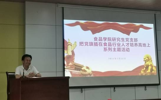 7月15日下午,食品学院研究生党支部于金银湖校区图书馆二楼学术报告厅举行“把党旗插在食品行业人才培养高地上”系列主题活动。此次活动邀请到了中国油脂行业泰斗、中国粮油学会首席专家、油脂分会会长王瑞元先生进行了题为“刻苦钻研,立志早日为中国粮油行业的发展多作贡献”的报告。食品学院党委书记王宏光、食品学院研究生党支部全体党员参加了本次活动。