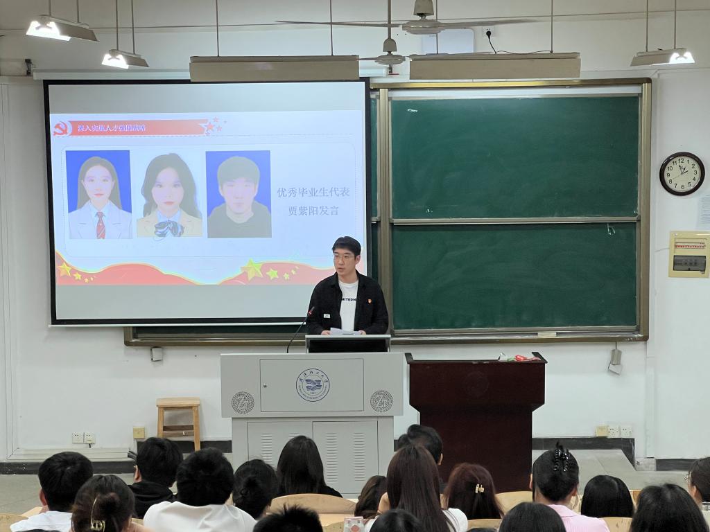 优秀毕业研究生、2020级党员贾紫阳代表全体毕业生党员发言。他表示,未来无论走到哪里,将不负母校重托,牢记“明德、积学、砺志、笃行”的校训,把“小我”融入到祖国和人民的“大我”中去,在奋斗中绘就理想蓝图。他还号召毕业生要文明离校,为学弟学妹留下一个干净卫生的学习环境与生活环境。他衷心感谢学校各级领导与老师们的悉心培养,并祝愿母校的发展更上一层楼。