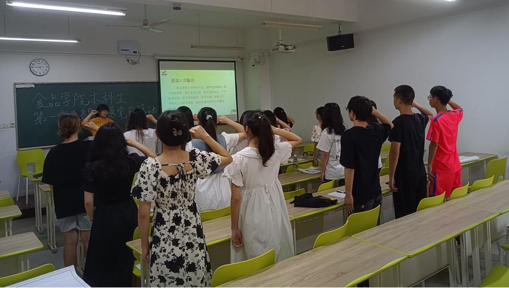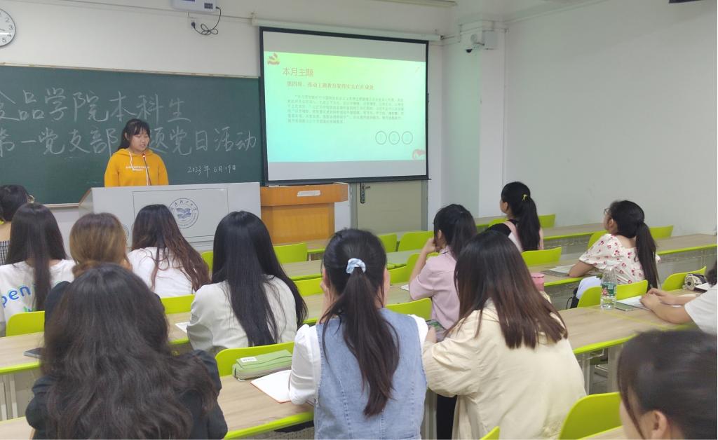 6月19日下午14:30,食品学院本科生第一党支部在科教楼704教室开展了6月份“以学增智,增强本领”主题党日活动,党支部书记门玲和18名新发展的预备党员参加本次学习。