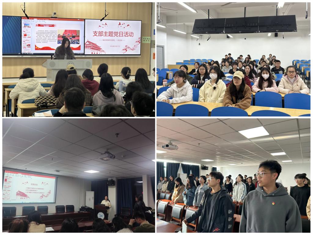 在庄严的国歌声中,活动拉开帷幕。全体党员重温了入党誓词并开展集中学习。在领学员的带领下,大家学习了“习近平总书记新时代中国特色社会主义思想主题教育总结会议精神”、“全国组织部长会议精神”、《党史学习教育工作条例》,以及“王立兵同志在武汉轻工大学二届六次全会上的工作报告和闭幕会上的讲话”等内容。