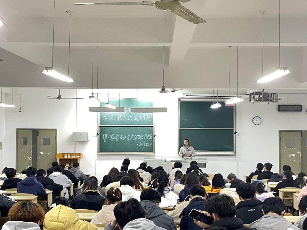 寒假即将到来,疫情防控形式依旧严峻。李老师在会上强调,各位同学在期末考试和课程设计结束后不要擅自在外逗留,积极配合学校办理离校手续和流程,离校前在今日校园里附上车票证件等信息,并填写寒假离校安全承诺书,详细备注离校返家行程轨迹,做到离校即返家,返家过程一定要注意人身安全和财产安全;各位同学在离校之际还要重视寝室安全问题,关闭寝室水电门窗,做到人走水电断,消除安全隐患。
