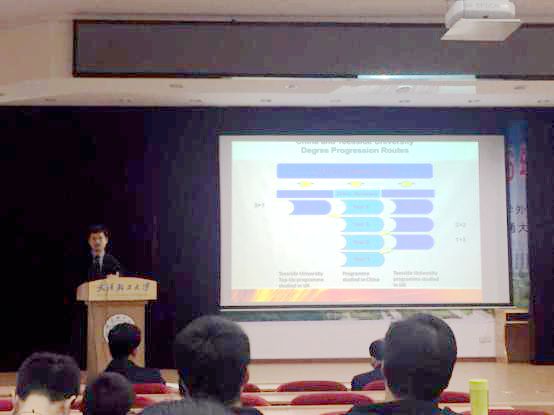 本次专题讲座侯亮老师详细的介绍了提赛德大学的课程设置、师资硬件、住宿环境、学习生活费用、入学要求等多方面内容,另外还介绍了近年来在提赛德大学就读的学长学姐的相关情况,让在场的同学们对提赛德大学和中外合作项目有了清晰的认识。
