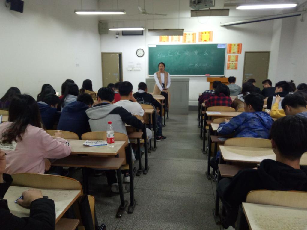 此次班会在4月8日下午6.30分正式开始,王国珍老师首先要求了学生门能做到正确且合理的自我评估,明确自己的目标:是考研还是直接工作。并在这两方面都给我们提出了合理的建议,考研的同学要多加思考合理安排自己的时间,对学习有更多的投入,课下亦可联系老师,同老师一起做实验、搞科研,提前适应研究生的生活。而想要直接工作的同学更应关心自己的学习,拿出成绩,多参加实践实习,提升自己的能力。而做到这些具体到方法上,王国珍老师提出了许多见解:“不论什么时候,我们都应具有忧患意识,不能沉浸于现在的玩乐而荒废时间,要懂得给自己施加压力,四级没过的过四级,过了还有六级,雅思托福等着你,每个人都情况都不一样,所以我们要做到与自己对比,与过去的自己比,这样,每当获得进步,都能体验到超越的动力,只有自己给自己足够的动力与压力,才能有进步,能力也可以得到质的提升……”。在王国珍老师的一番话语下,同学都对自己的状态有了许多的思考,反响很大。