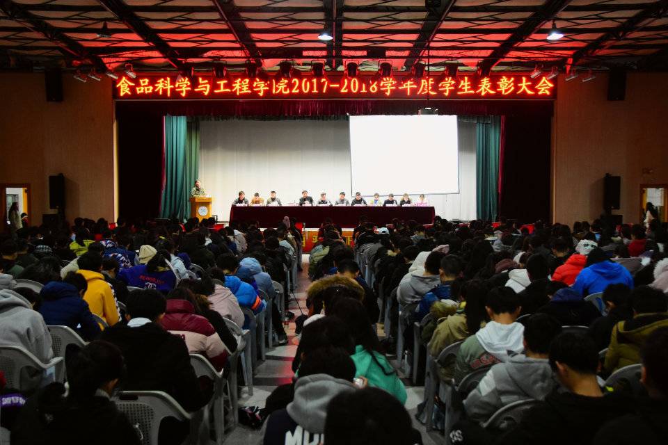 大会在齐唱国歌的庄严歌声中拉开帷幕。大会伊始,分别由易文君书记、王宏光书记和丁文平院长宣读表彰文件。接着,院优秀学生、院优秀学生干部、校优秀学生、校优秀学生干部、校优秀学生标兵、校先进班集体获奖代表分别上台接受表彰。除此之外,本次大会还对获得校一等奖学金、国家励志奖学金、国家奖学金、布勒精英奖学金、校恒青奖学金、新苗铸才奖学金、神丹一等奖学金、力源奖学金的同学们进行了表彰。随后,由先进班级代表汪昆立、国家奖学金学生代表段超上台发言,他们都表达了对班级,对学院和对学校的感谢,并表示自己在以后的学习生活中会再接再厉。之后,神丹公司代表幸启德、力源公司代表孙党波分别上台讲话,表达了对同学们的鼓励,对食品学院的感谢,以及对同学们以后能够进入公司的期待。最后王宏光书记进行总结讲话,他对在场全体同学的努力表示认同与鼓励,同时也对大家提出了几点要求:一、不忘初心,坚定理想信念;二、脚踏实地,练就坚实本领;三、善于学习,铸就成长成才;四、勇于攀登,攀登人生理想。希望同学们要坚信没有昨天的辛勤耕耘,就没有今天的累累硕果,谨记以上所有老师和同学的肺腑之言,力争在新学年再续辉煌!